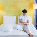 Lovely modern place with accommodating staff and free wi-fi. The rooms were large overall. Good service. Found in a pedestrian area.
